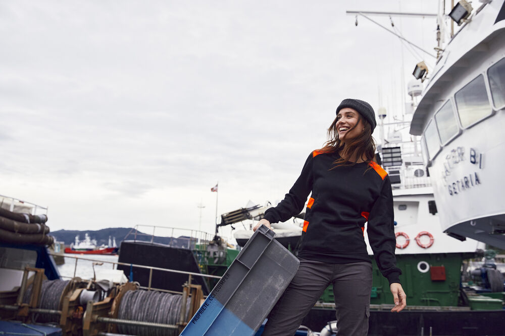 En rundhalsad unisex-tröja med kontrast för ökad synlighet. Tillverkad av återvunnen polyester som har en bomullskänsla. En dold sidficka med dragkedja. Muddar och nederkant i ribbtyg. Utrustad med en avtagbar nacketikett för enkelt kunna addera egen avsändare.