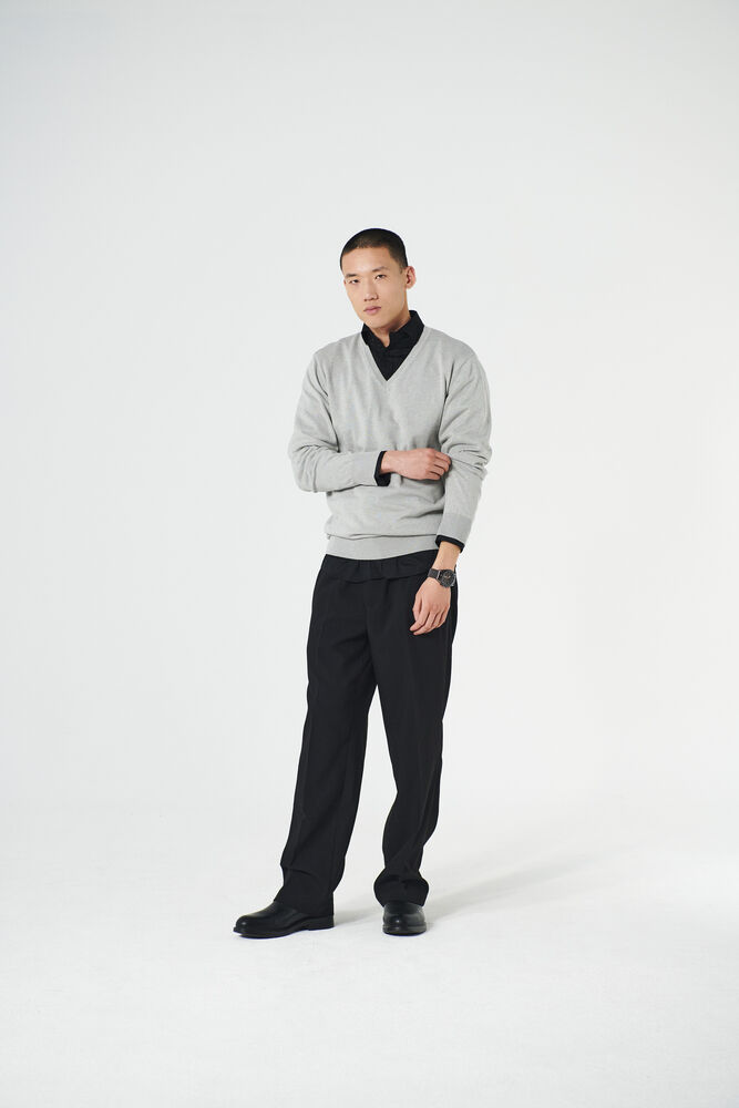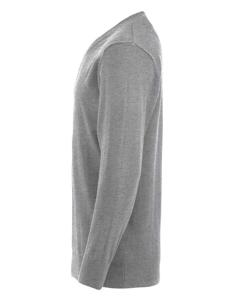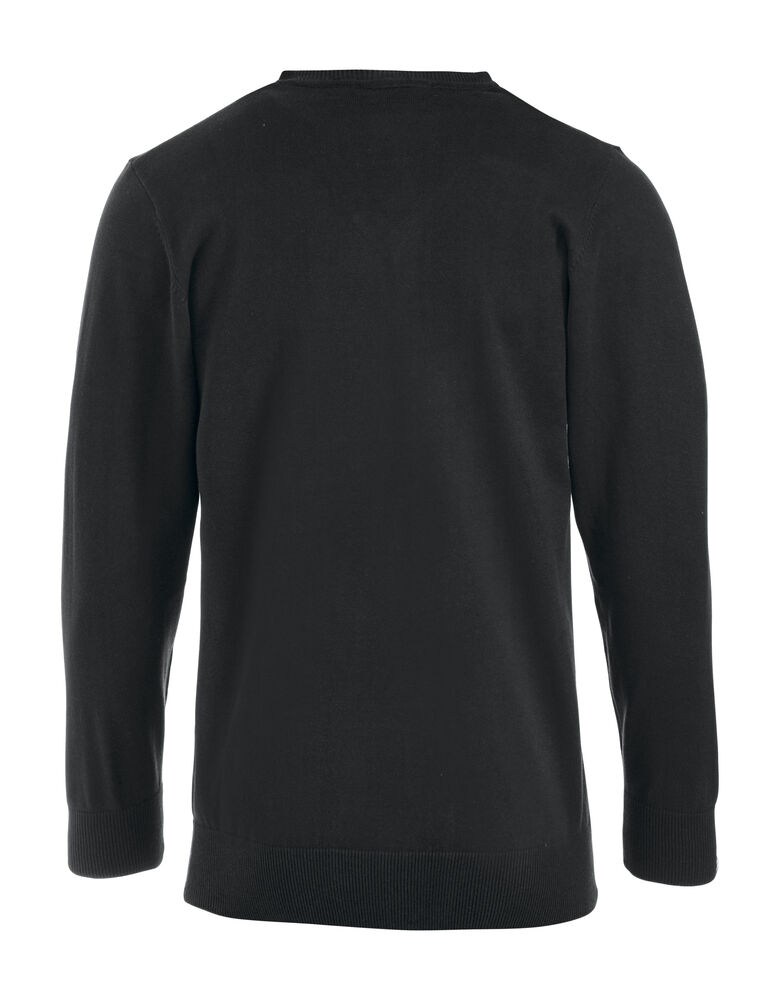 V-ringad stickad tröja med fully fashion-stickning. Silikonbehandlad för en mjukare känsla. Elastan i den ribbade mudden både i ärmslut och nedtill.