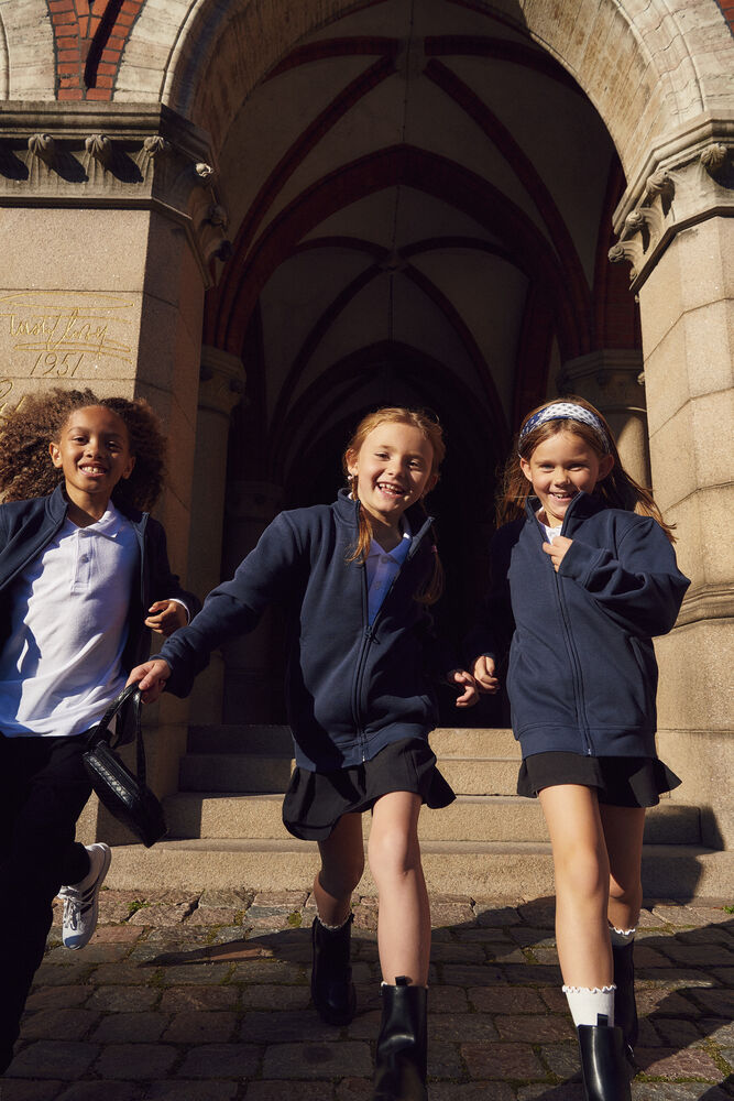 Sweatshirt cardigan i barnmodell med hel dragkedja framtill, ribb i mudd och avslut nedtill. Borstad insida. Smart detalj för att kunna bära hörlurar ingår. Produkten är barnsäker.
