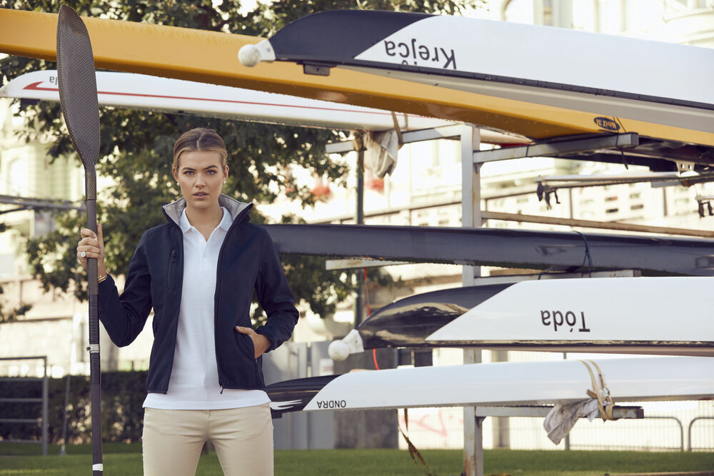 Softshell jacka med tre ytterfickor och två innerfickor. Ton-i-ton dragkedjor, elastiskt band i nederkant och i ärmslut. Denna jacka är perfekt att matcha till våra Basic Fleece produkter.