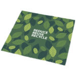 Putsduk för sublimering i fullfärg av återvunnen PET. Kan tryckas på ena eller båda sidorna. För dubbelsidigt tryck kan du välja mellan standard eller mönsterpassad (mönsterpassad innebär att trycket ligger i linje på båda sidor). Lätt att ha med sig för att rengöra glasögon, pekskärm, mobiltelefon eller surfplatta. Storlek: liten.