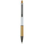 Kulspetspennan Darius är tillverkad av återvunnen aluminium, vilket kräver mindre energi än att tillverka aluminium från råmaterial. Den minskar också mängden avfall och bidrar till att bevara naturresurser med syftet att minska växthusgasutsläppen. Tryckknappen och den nedre delen av pennkroppen är tillverkade av bambu. Bläckfärg: Svart. Skrivlängd: 800 meter. Spetsstorlek: 1,00 mm.