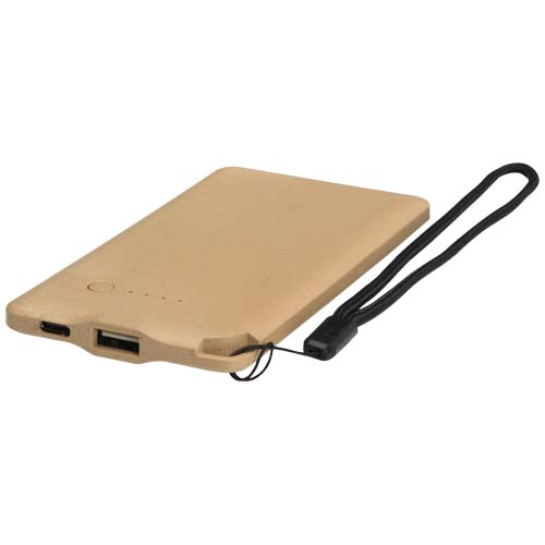 Biologiskt nedbrytbar och kompakt powerbank med en praktisk ögla för enkel fastsättning. Laddningskabel medföljer. Ingång: DC 5 V/800mA. Utgång DC 5 V/1000mA. Batteri: Litiumjonpolymer.