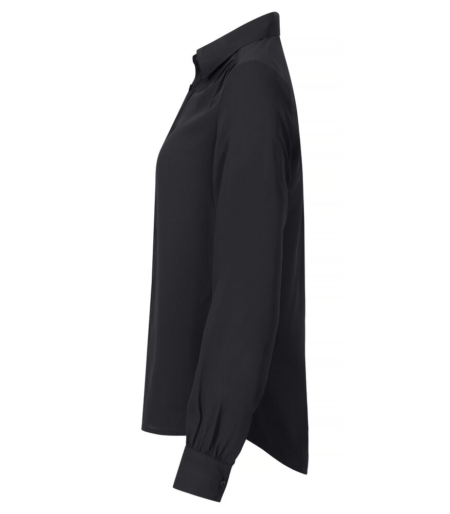 En tidlös klassisk blus. Tillverkad i ett lätt och halvtransparent material som har ett fint fall. Dold knappslå. Rynkade detaljer framtill, ärmslut samt ok baktill för snyggare passform.