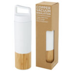 Vakuumisolerad kopparflaska i rostfritt stål med en klassisk och elegant design. Har en PU-läderrem och detalj på locket. Detta gör den idealisk för gravyr, något som kommer att markera logotypen i en silverfärg och skapa en vacker visuell effekt. Med sitt dubbelväggiga kopparvakuumisolerade 18/8 rostfria stål håller dryckerna sig varma eller kalla i flera timmar. Testad och godkänd enligt tysk lagstiftning om livsmedelssäkerhet (LFGB) och testad för ftalatinnehåll enligt REACH-förordningarna. Volymkapacitet 500 ml. Levereras i en återvunnen presentförpackning av kartong.