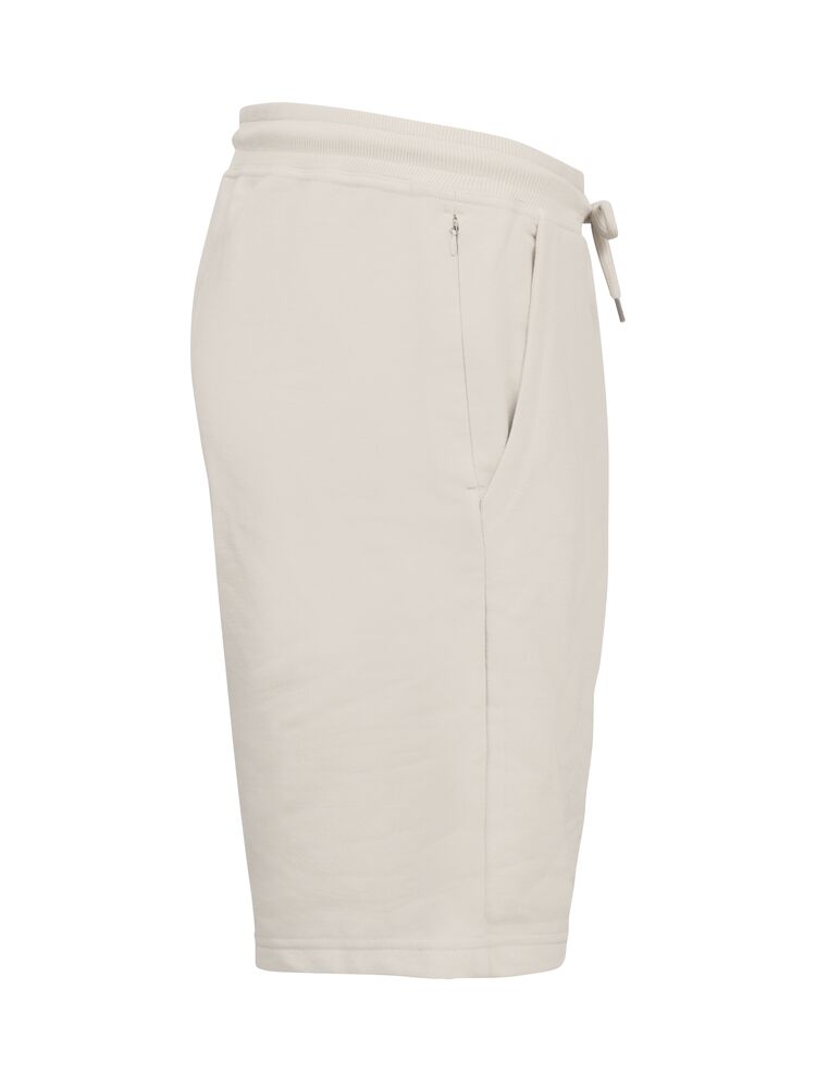 Unisexshorts i en mjuk blandning av bomull och återvunnen polyester. Modellen har två framfickor och en dold dragkedjeficka i sidsömmen. Insidan är i behaglig french terry och midjan i 2×2 ribb med dubbelstickning och dragsko för justerbar passform. Tyget är stabiliserat för att tåla intensiv tvätt och har antipilling-egenskaper. Lätt avtagbar etikett för ommärkning.