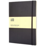 Classic L anteckningsbok med mjukt omslag – linjerad. Moleskine Classic L (13 x 21 cm) anteckningsbok med mjukt omslag finns i en rad olika stilfulla och livfulla färger. Anteckningsboken har ett omslag av mjuk kartong med rundade hörn, syrafritt papper, ett bokmärke och elastisk stängning. ”Meddelande till upphittare” på första sidan med utrymme att anteckna en belöning till upphittaren. Fäst på baksidan finns en expanderbar ficka som innehåller Moleskines historia. Fickan kan användas för lösa papper och anteckningar. Innehåller 192 elfenbensfärgade linjerade sidor.