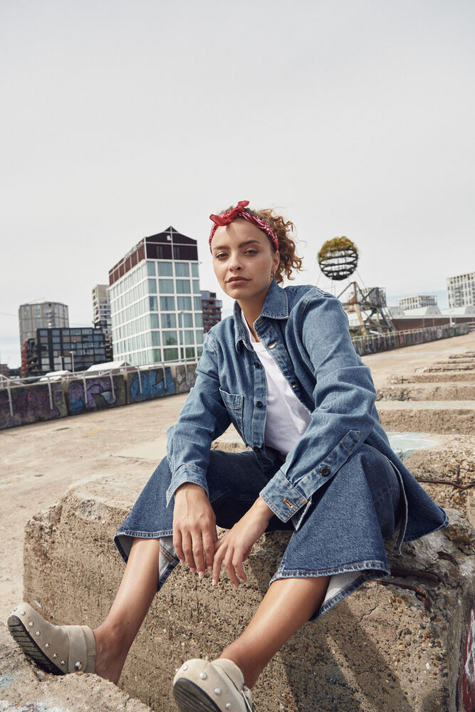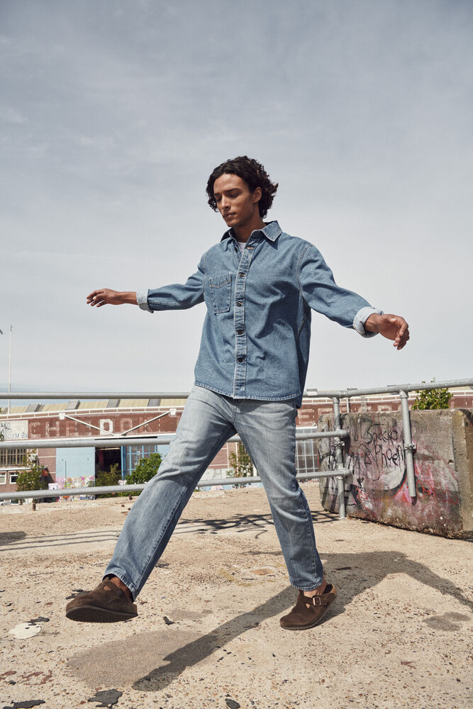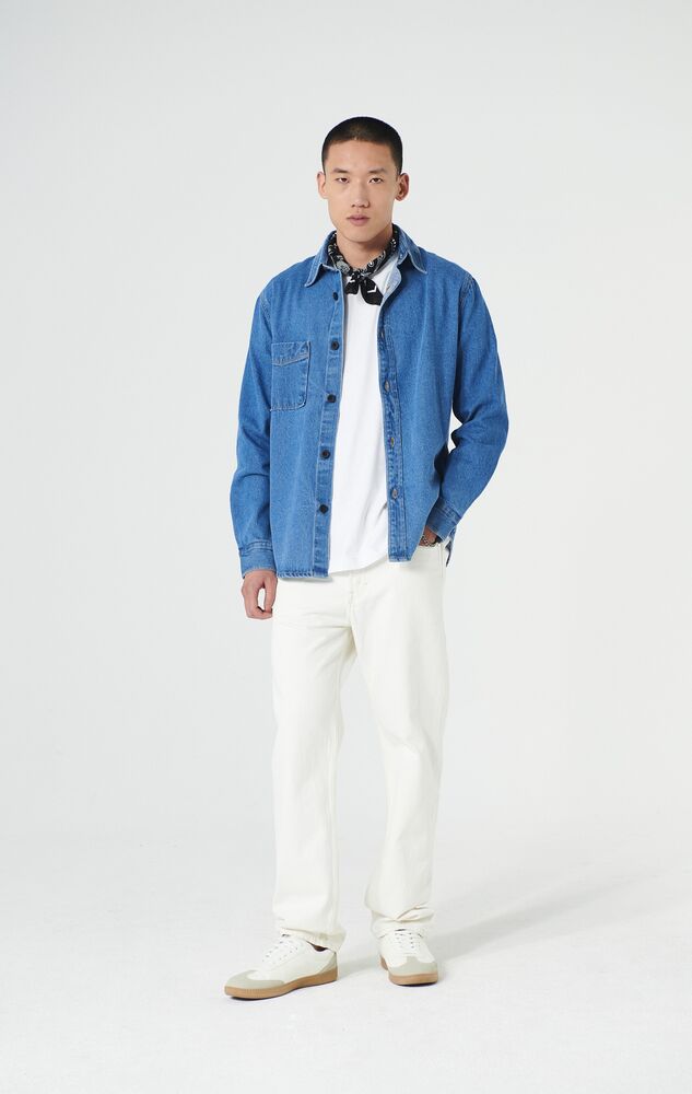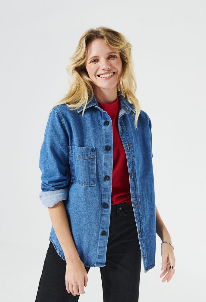 Rak och avslappnad passform med svarta knappar och stor bröstficka. Ärmar med manschetter och svarta knappar, samt ok i ryggen. Lätt avtagbar etikett för ommärkning.