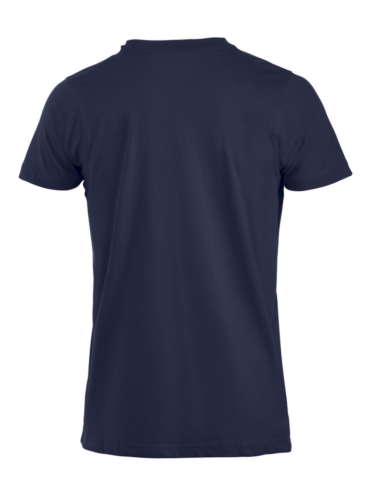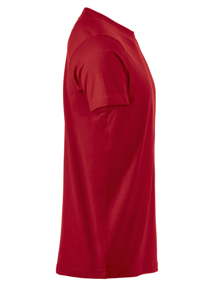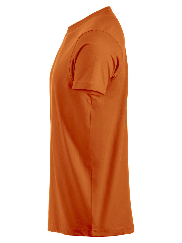 Modern t-shirt i förkrympt single jersey med sidsömmar, dubbelkrage i bomull/elastan samt nackband.