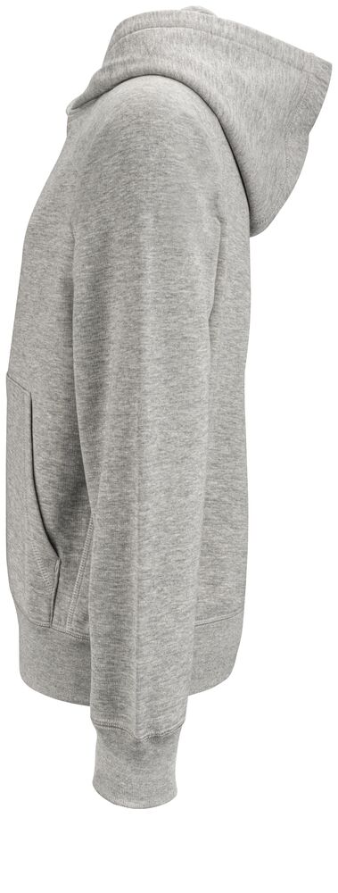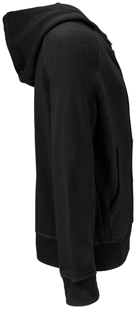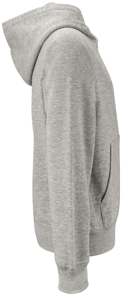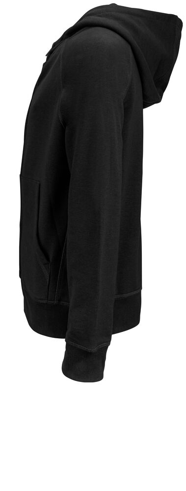 Fullzip hoody i juniormodell med dekorativa ton i ton flatlocksömmar, raglanskärning & ficka framtill. Huva med snören med metalländrar. Plagget har ingen nacketikett utan där kan man med fördel trycka sin egen logo/sitt eget varumärke, endast storleksetikett finns. French terry insida. French terry insida. 1 x 1 stretchribb i muddar och avslut nertill av tröjan.