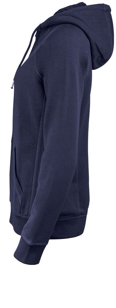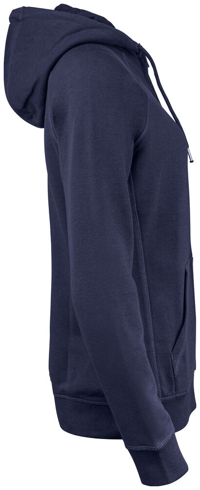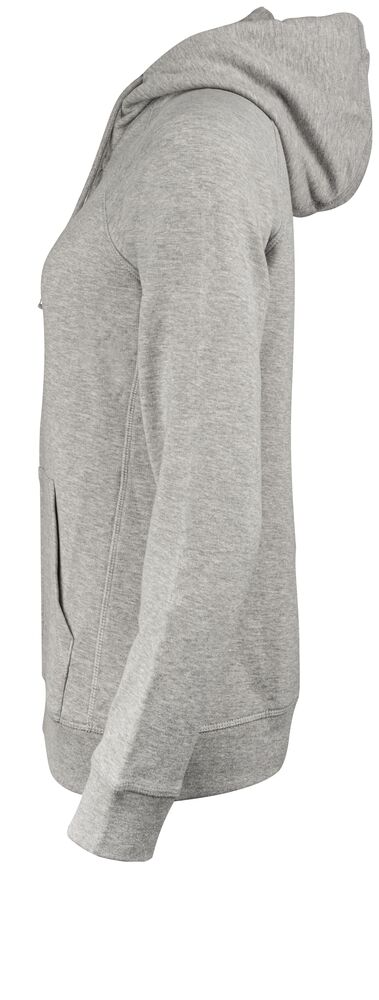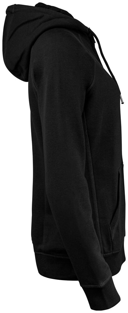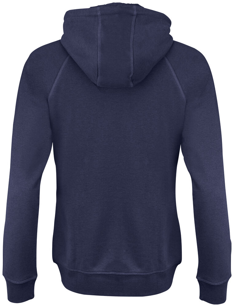 Fullzip hoody i dammodell med dekorativa ton i ton flatlocksömmar, raglanskärning & ficka framtill. Huva med snören med metalländrar. Plagget har ingen nacketikett utan där kan man med fördel trycka sin egen logo/sitt eget varumärke, endast storleksetikett finns. French terry insida. French terry insida. 1 x 1 stretchribb i muddar och avslut nertill av tröjan.
