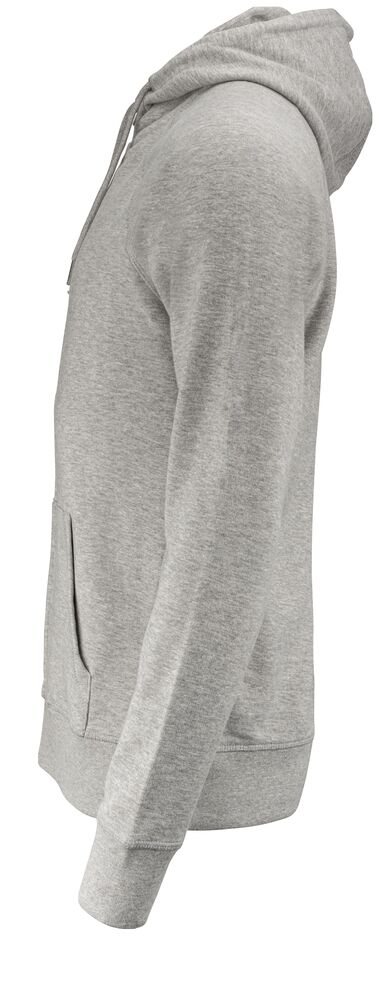 Fullzip hoody i unisex/herrmodell med dekorativa ton i ton flatlocksömmar, raglanskärning & ficka framtill. Huva med snören med metalländrar. Plagget har ingen nacketikett utan där kan man med fördel trycka sin egen logo/sitt eget varumärke, endast storleksetikett finns. French terry insida. French terry insida. 1 x 1 stretchribb i muddar och avslut nertill av tröjan.