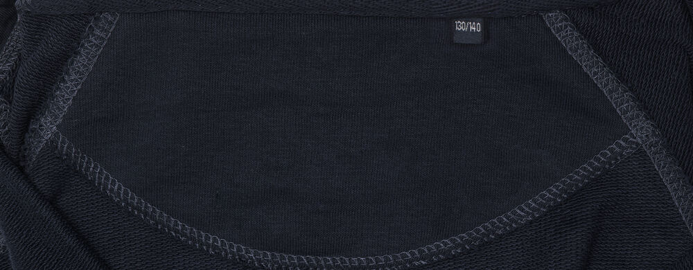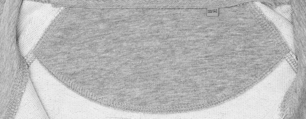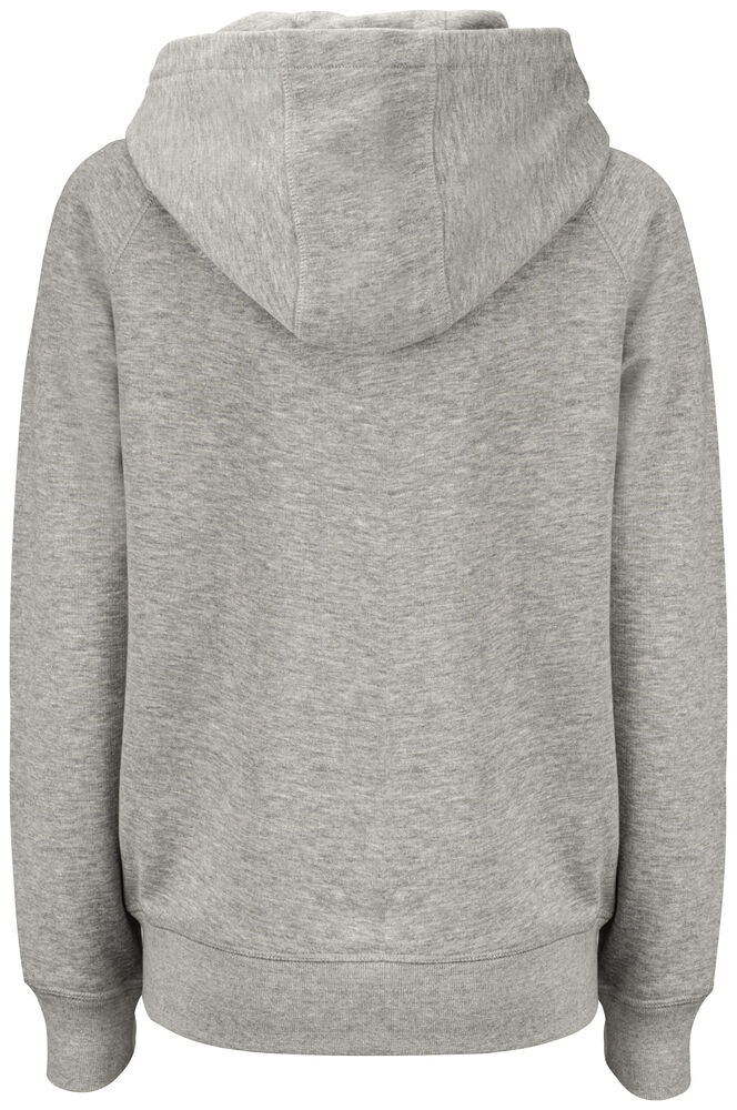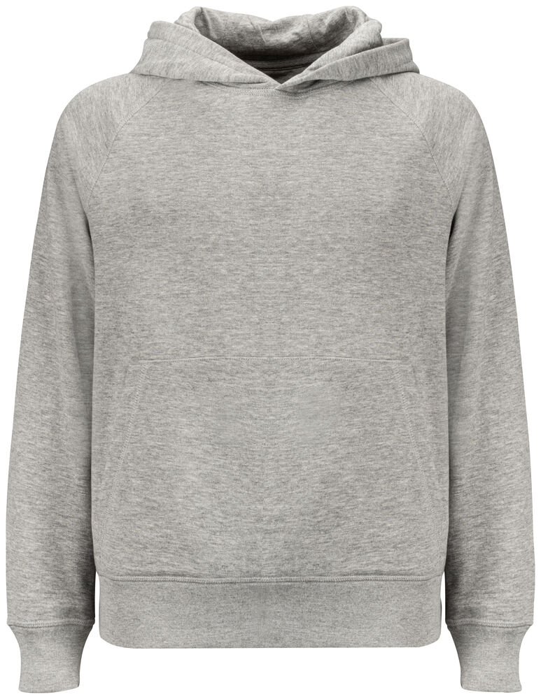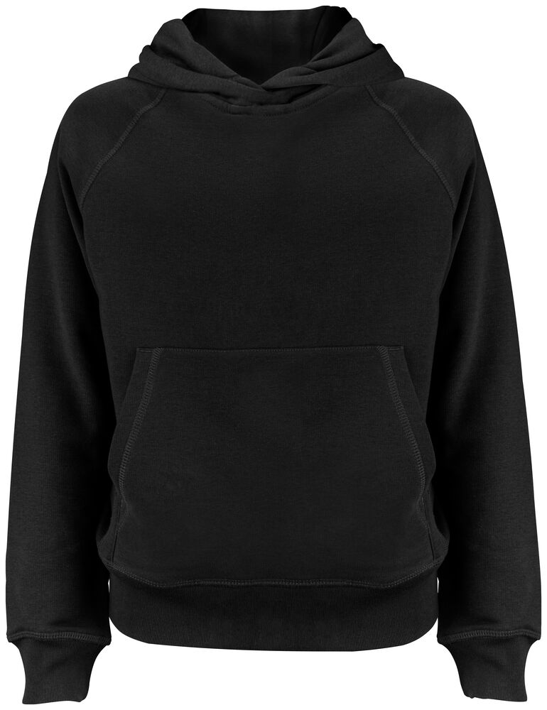 Hoodtröja i juniormodell med dekorativa ton i ton flatlocksömmar, raglanskärning & ficka framtill. Huva med snören med metalländrar. Plagget har ingen nacketikett utan där kan man med fördel trycka sin egen logo/sitt eget varumärke, endast storleksetikett finns. French terry insida. 1 x 1 stretchribb i muddar och avslut nertill av tröjan.