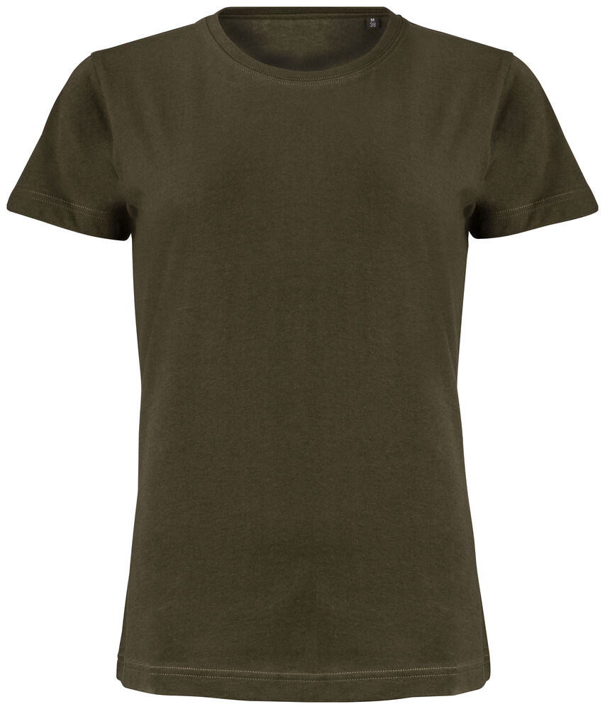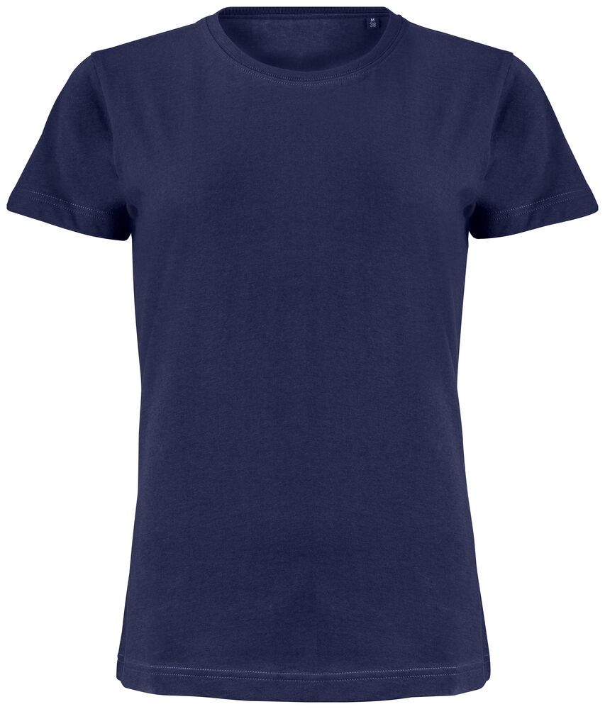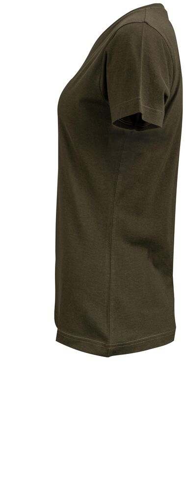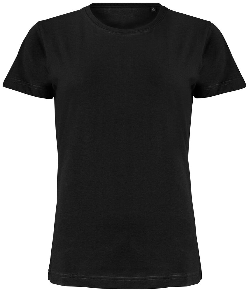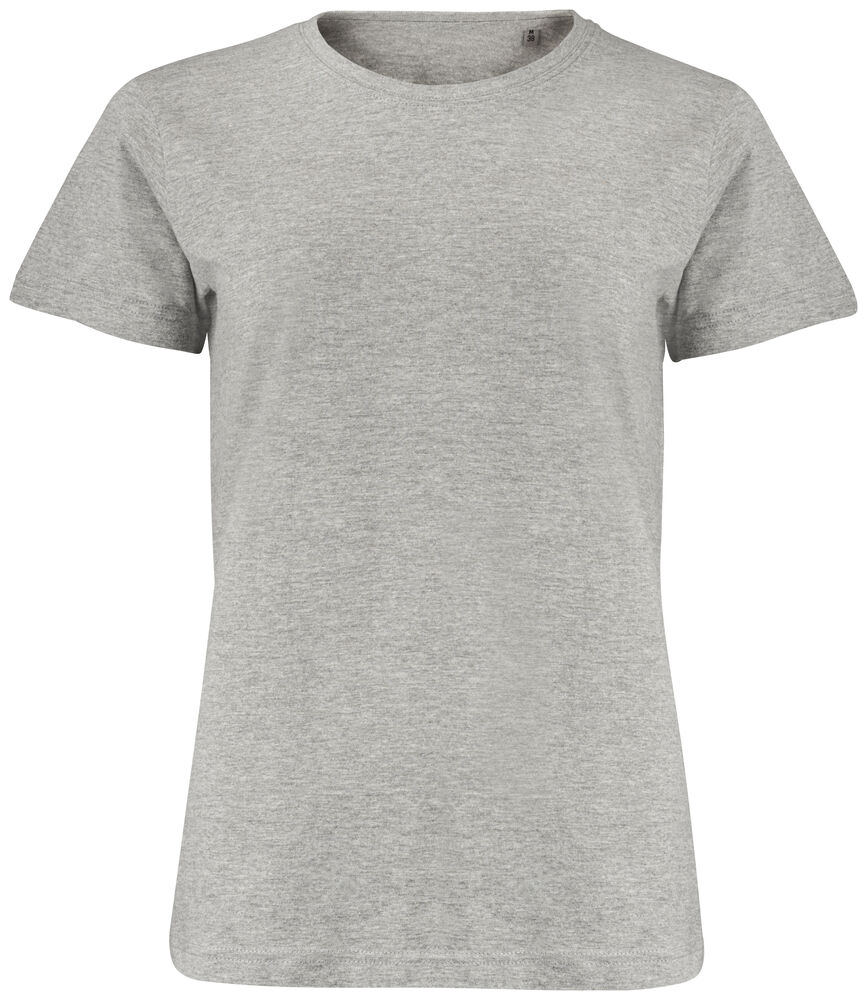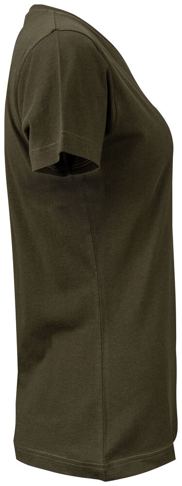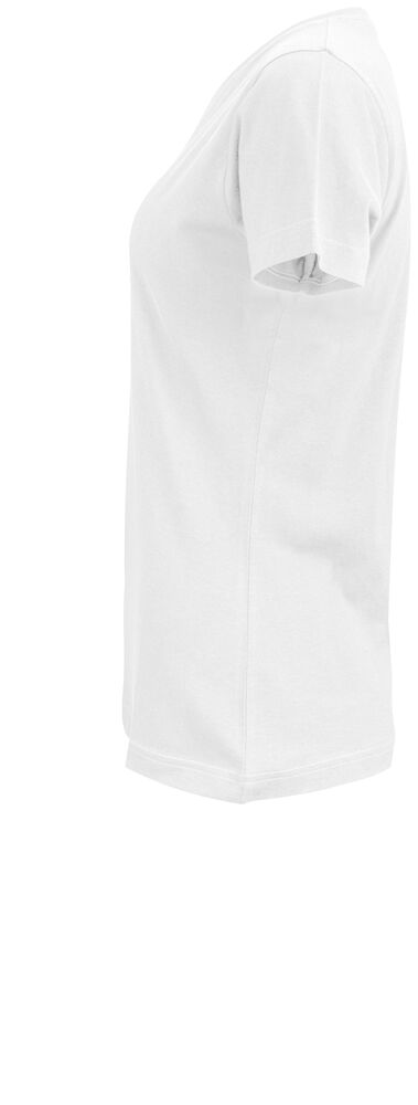 Klassisk dam t-shirt i bästa kvalitet i modern passform. Plagget har ingen nacketikett utan där kan man med fördel trycka sin egen logo/sitt eget varumärke, endast storleksetikett finns