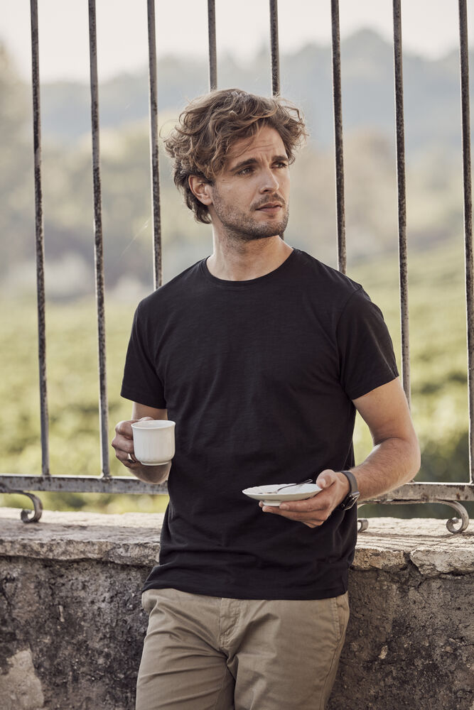 En modern t-shirt i 100% slub ringspunnen jersey bomull med sidsömmar, förstärkt nackband och en avtagbar nacketikett för att enkelt kunna addera egen avsändare. T-shirten är förkrympt och enzymbehandlad.