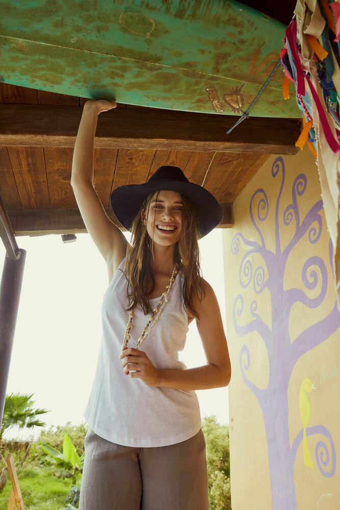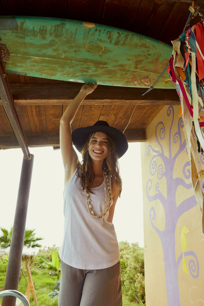 Modert slublinne i 100% ringspunnen bomull i jersey. Tillverkad med sidosömmar och ett dekorativt hål i ryggen. En avtagbar nacketikett för att enkelt kunna addera egen avsändare. Plagget är förkrympt och enzymbehandlat för mjukare känsla.