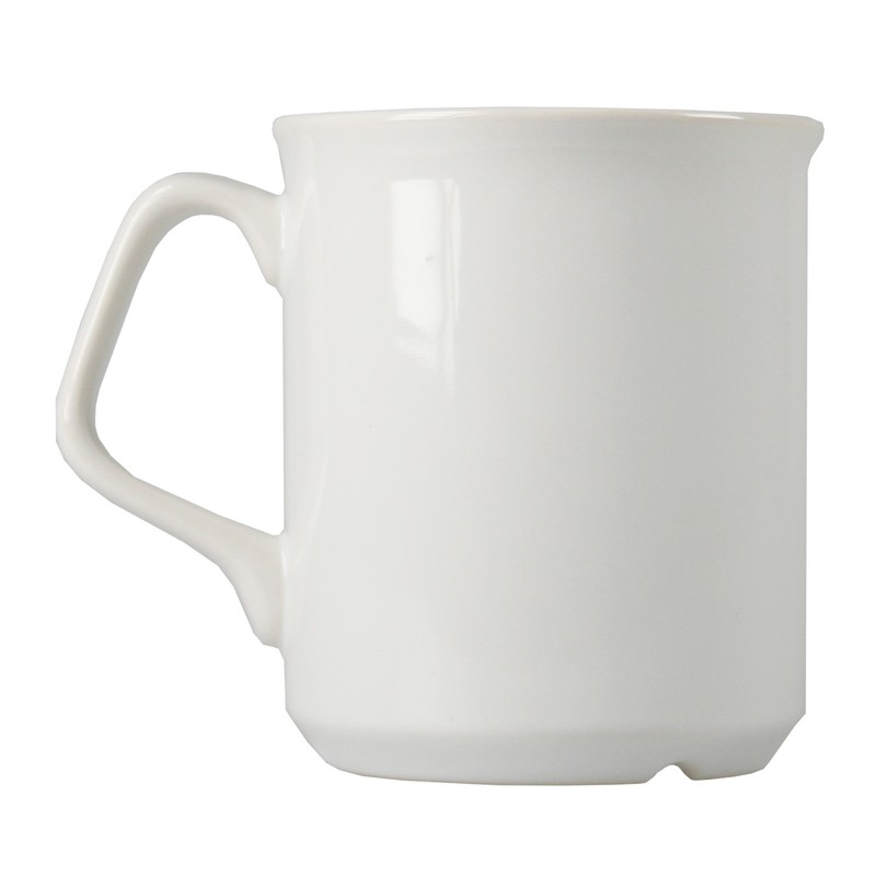En mycket populär och prisvärd mugg! Stadig och rak i lagom storlek och med lätt böjd kant. Helblankt stengods. Mått: 30 cl. Höjd 93 mm. Max tryckyta: 160 x 60 mm, fototryck Ø 50 mm.