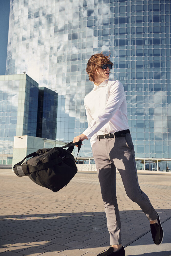 En långärmad stretchskjorta med knappar i normal passform. Knappjustering i ärmavslut, herr kommer med en bröstficka. Ok i ryggen.