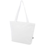 Tygväskan Zeus är tillverkad av slitstark och rivtålig GRS-återvunnen RPET och är ett perfekt alternativ för mässor eller konferenser. Den tunna designen gör den till en elegant modell som passar för lättare föremål som en anteckningsbok och en penna. Handtagen är 29 cm långa och därför är väskan lätt att bära över axeln. Klarar upp till 5 kg vikt.